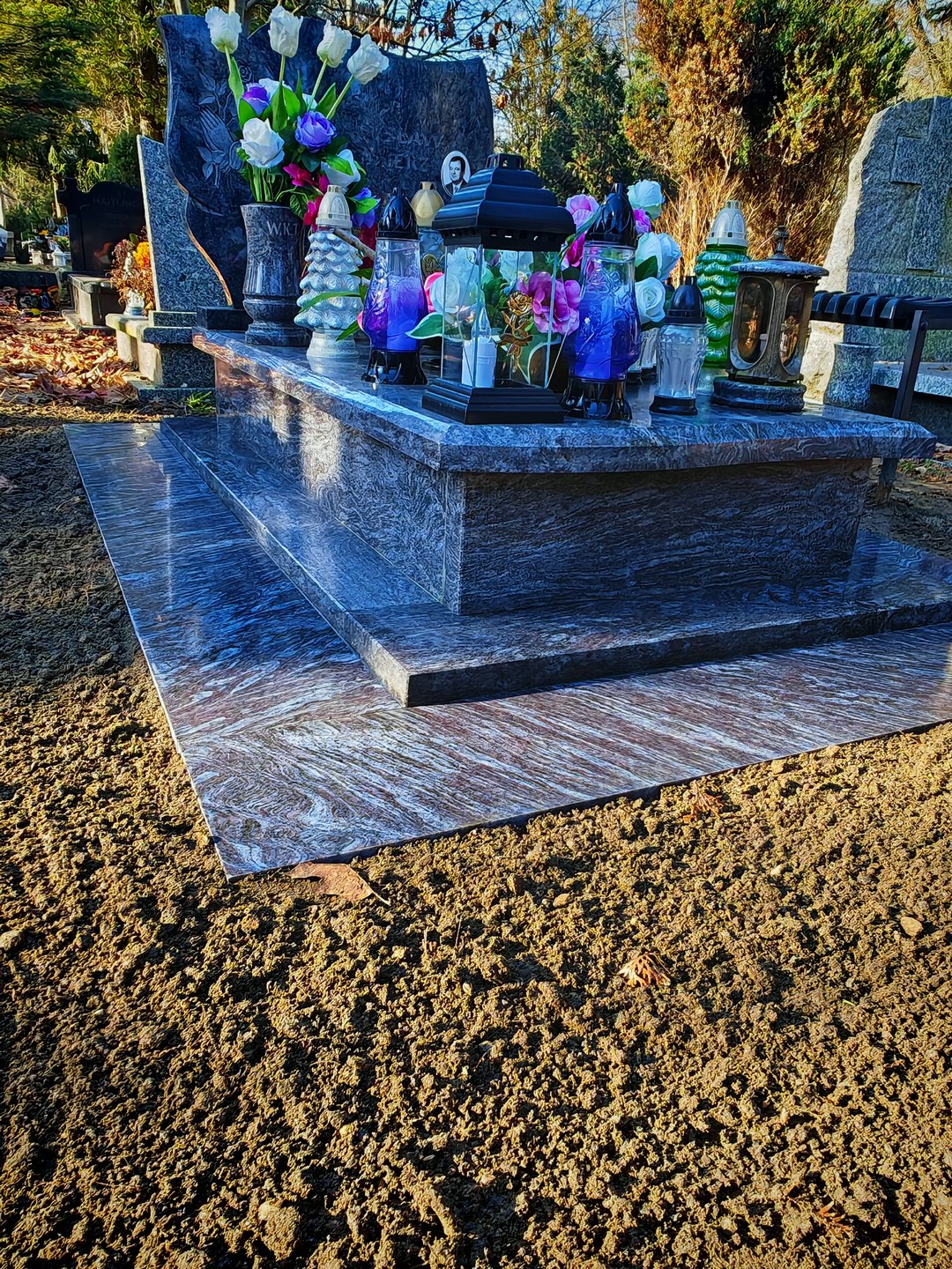 Jesteśmy profesjonalną firma świadcząca usługi kamieniarskie. Nasz zakład kamieniarski zajmuje się sprzedażą i montażem nagrobków na terenie między innymi: Wrocław, Długołęka, Trzebnica, Oleśnica i Siechnice. Wykonujemy podnoszenie zapadniętych nagrobków, opaski wokół pomników (kostka wokół pomnika, grys, obrzeża z granitu płomieniowanego oraz polerowanego w kolorze pomnika), dopiski do tablic (kute i piaskowane), renowację pomników oraz malowanie liter, polerowanie nagrobków i sprzątanie pomników. Oferujemy także najwyższej jakości pielęgnację zieleni oraz kompleksowe prace porządkowe przy grobach. Działamy solidnie, dokładnie i terminowo - zapewniamy pełną opiekę nad grobami. Posiadamy bogatą ofertę tanich nagrobków z granitu.